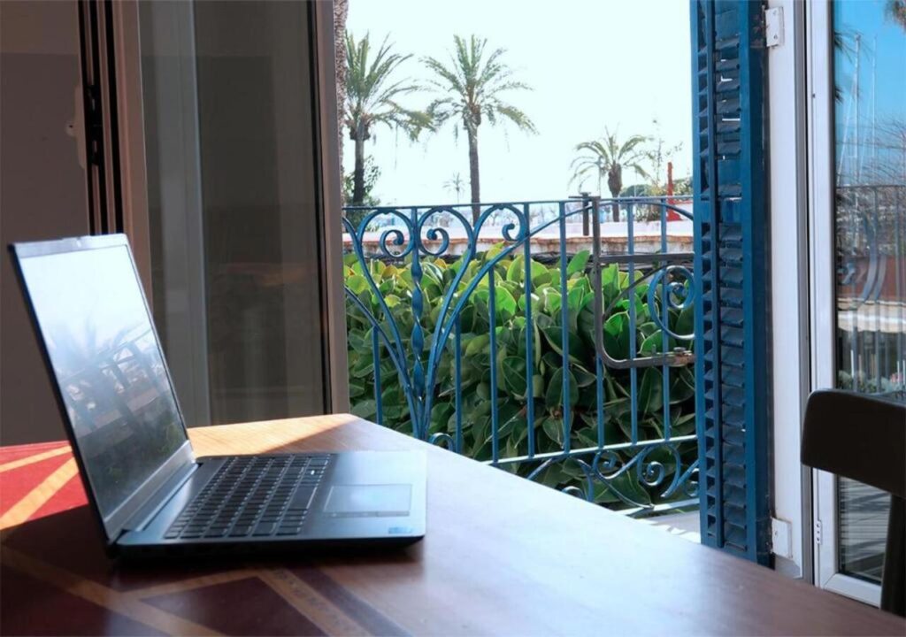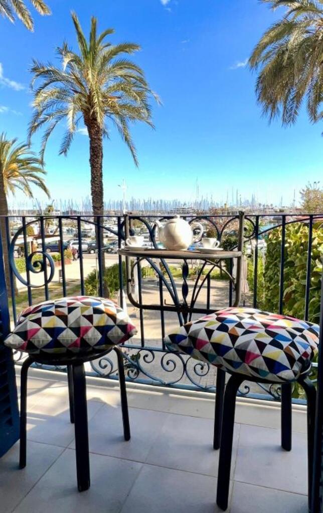 A great coffee sipped on the balcony overviewing the yacht hatbor less than a minute walk.